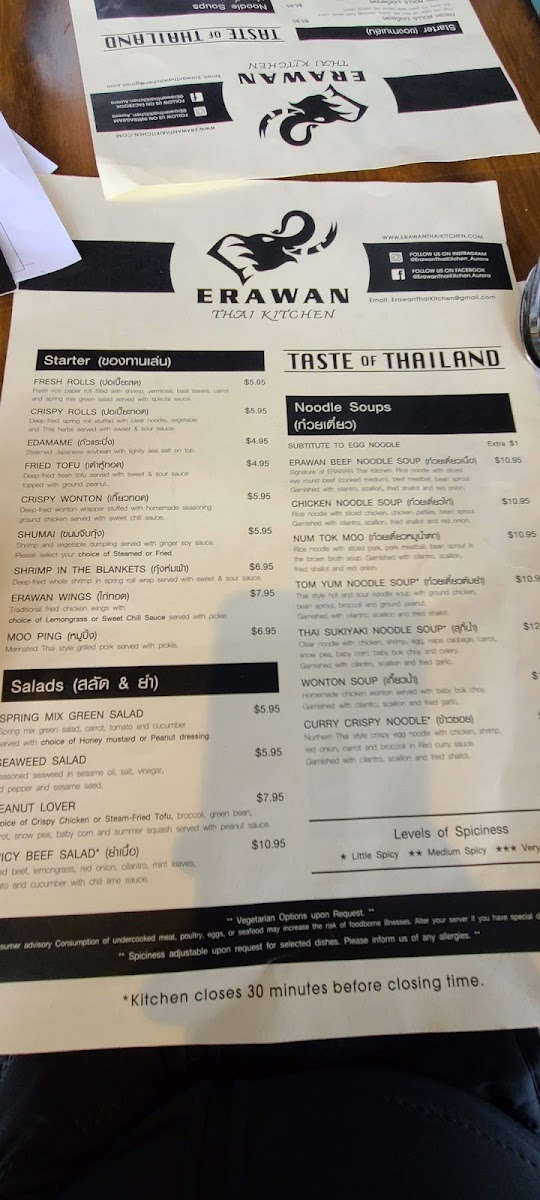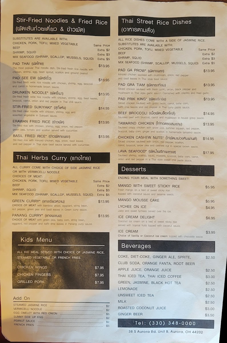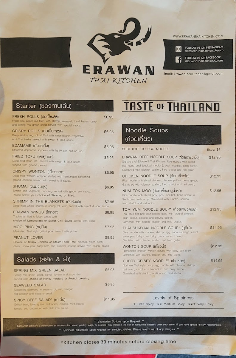 Looking for an authentic taste of Thailand? The Erawan Thai Kitchen Menu is packed with mouthwatering dishes that bring the vibrant flavors of Thai cuisine straight to your table. Located at 38 S Aurora Rd Unit B in Aurora, OH, this cozy spot offers everything from rich curries to fresh stir-fries, and each dish is made with care using fresh ingredients and bold spices. Whether you're in the mood for something savory or spicy, the menu has something for everyone, including a variety of vegan and vegetarian options.